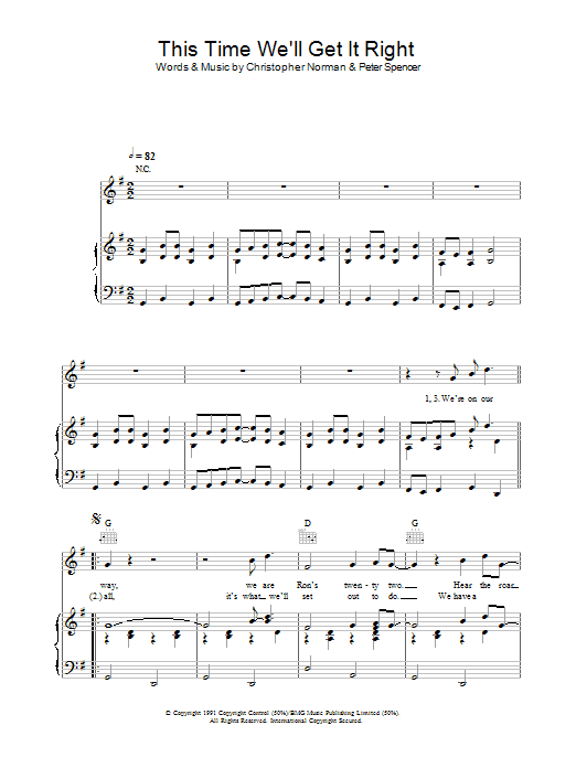Download or print England World Cup Squad This Time (We'll Get It Right) sheet music, chords and digital score arranged for Piano, Vocal & Guitar Chords. This Pop score includes 4 page(s).
