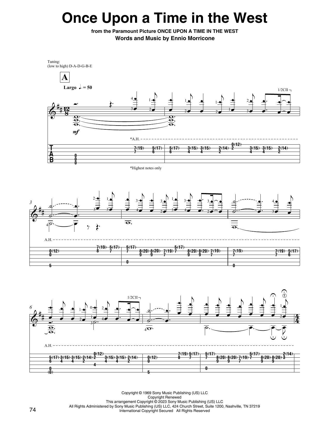 Download or print Ennio Morricone Once Upon A Time In The West (arr. David Jaggs) sheet music, chords and digital score arranged for Solo Guitar. This Film/TV score includes 3 page(s).