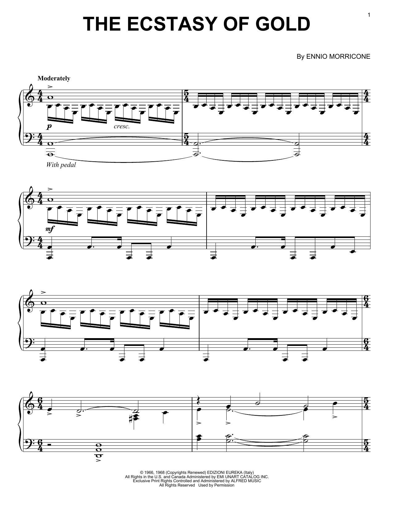 Download or print Ennio Morricone The Ecstasy Of Gold sheet music, chords and digital score arranged for Piano Solo. This Pop score includes 4 page(s).