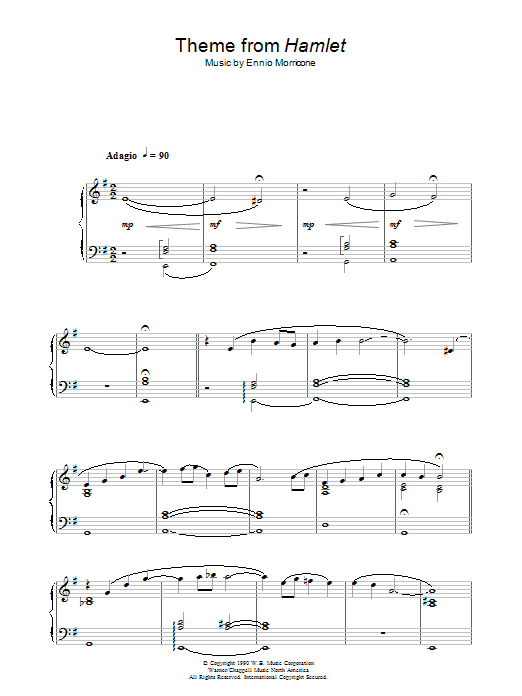 Download or print Ennio Morricone Theme from Hamlet sheet music, chords and digital score arranged for Piano Solo. This Film/TV score includes 2 page(s).