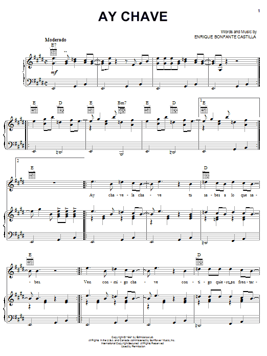 Download or print Enrique Bonfante Castilla Ay Chave sheet music, chords and digital score arranged for Piano, Vocal & Guitar Chords (Right-Hand Melody). This Latin score includes 3 page(s).