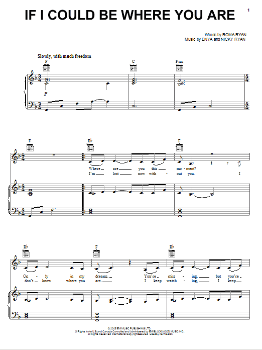Download or print Enya If I Could Be Where You Are sheet music, chords and digital score arranged for Piano, Vocal & Guitar Chords (Right-Hand Melody). This Pop score includes 3 page(s).