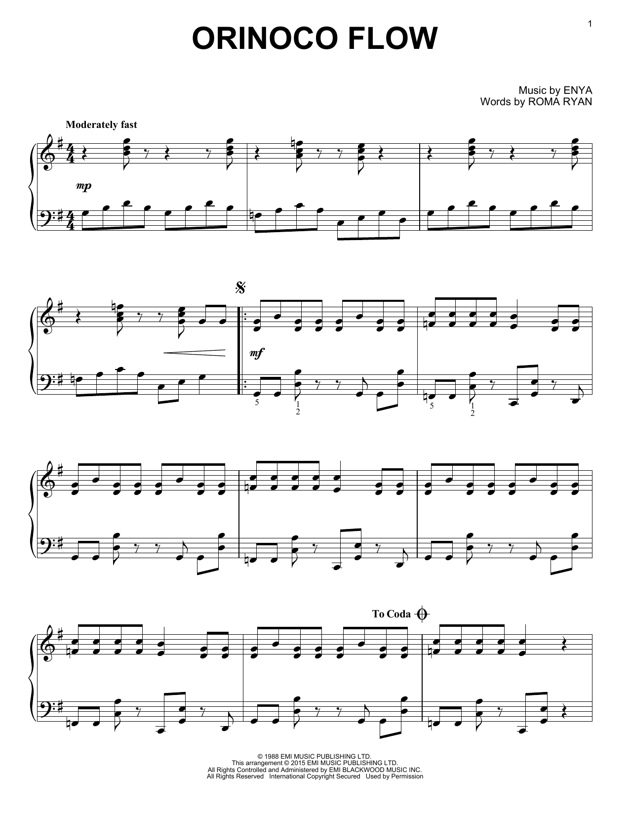 Download or print Enya Orinoco Flow sheet music, chords and digital score arranged for Guitar Chords/Lyrics. This Pop score includes 3 page(s).