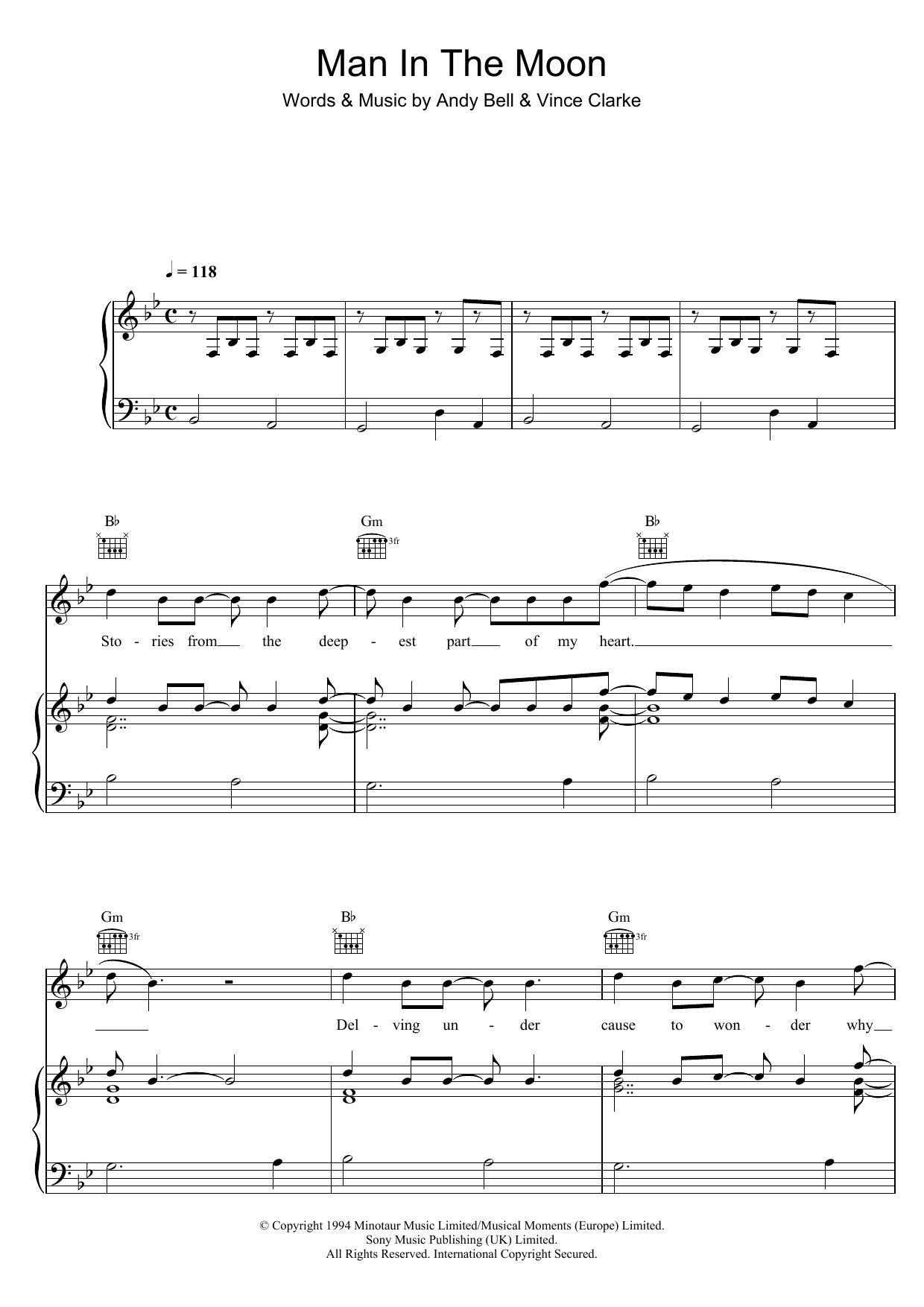 Download or print Erasure Man In the Moon sheet music, chords and digital score arranged for Piano, Vocal & Guitar Chords. This Pop score includes 8 page(s).