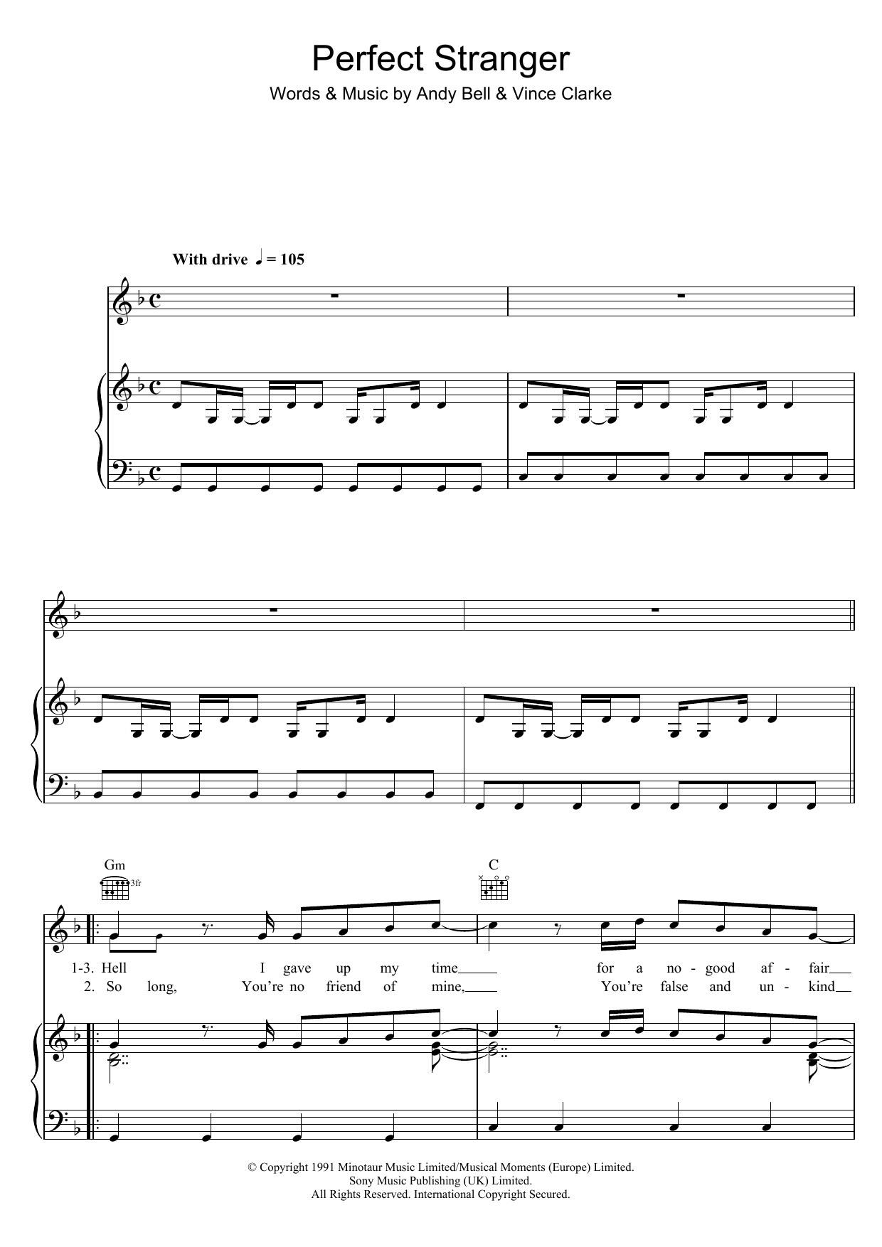 Download or print Erasure Perfect Stranger sheet music, chords and digital score arranged for Piano, Vocal & Guitar Chords. This Pop score includes 5 page(s).