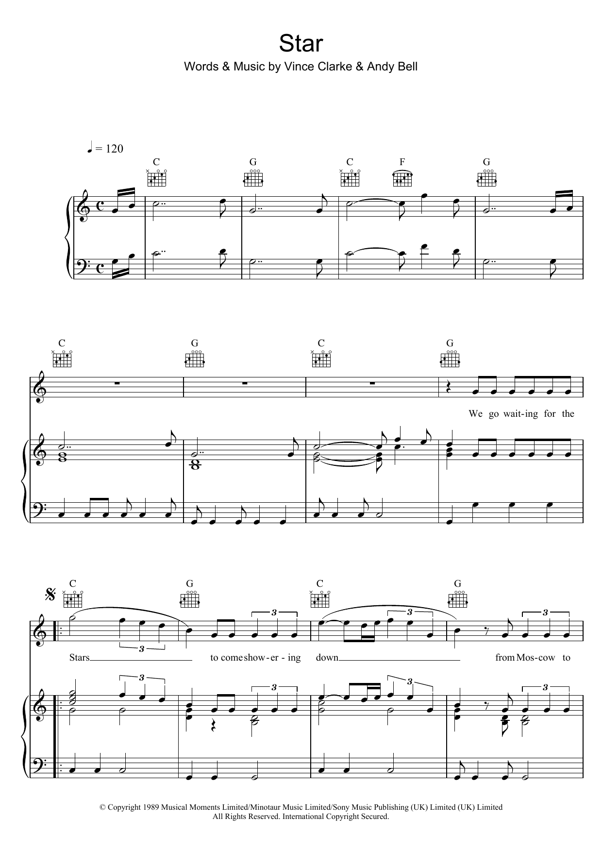 Download or print Erasure Star sheet music, chords and digital score arranged for Piano, Vocal & Guitar Chords. This Pop score includes 6 page(s).
