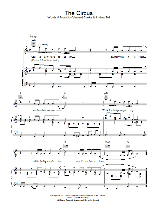 Download or print Erasure The Circus sheet music, chords and digital score arranged for Piano, Vocal & Guitar Chords. This Pop score includes 4 page(s).