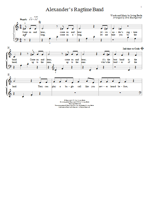Download or print Eric Baumgartner Alexander's Ragtime Band sheet music, chords and digital score arranged for Educational Piano. This Standards score includes 2 page(s).
