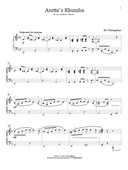 Download or print Eric Baumgartner Aretta's Rhumba sheet music, chords and digital score arranged for Educational Piano. This Pop score includes 3 page(s).