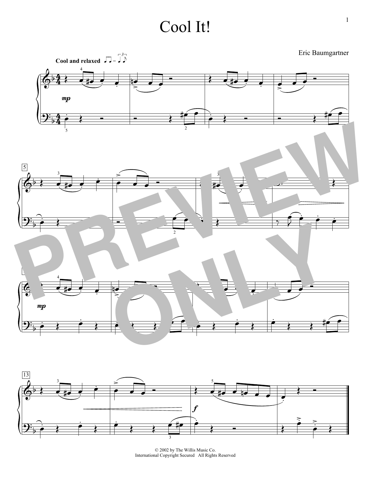 Download or print Eric Baumgartner Cool It! sheet music, chords and digital score arranged for Educational Piano. This Jazz score includes 1 page(s).