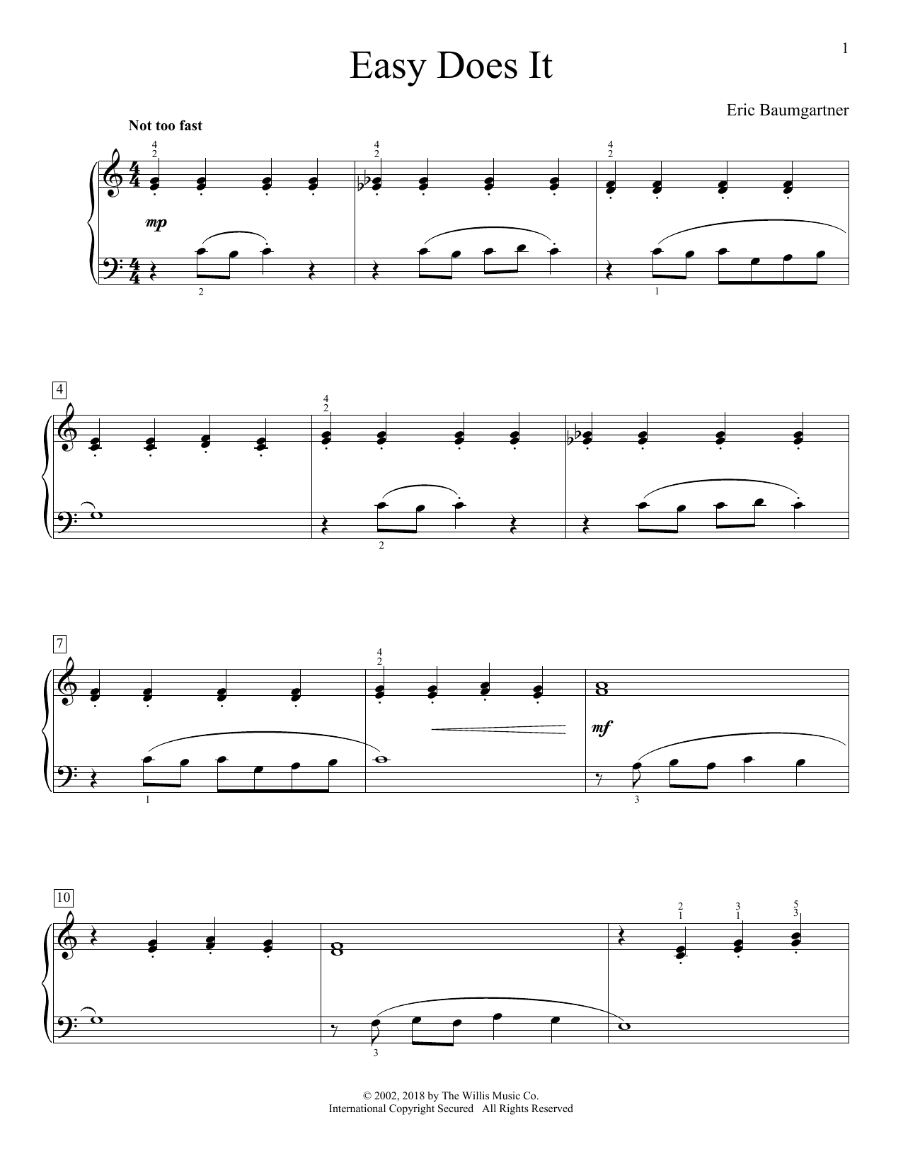 Download or print Eric Baumgartner Easy Does It sheet music, chords and digital score arranged for Educational Piano. This Jazz score includes 2 page(s).