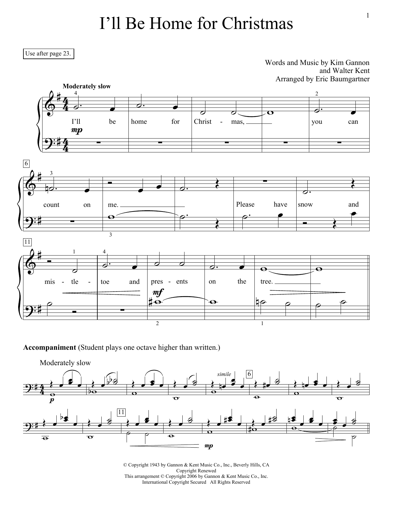 Download or print Eric Baumgartner I'll Be Home For Christmas sheet music, chords and digital score arranged for Educational Piano. This Christmas score includes 2 page(s).