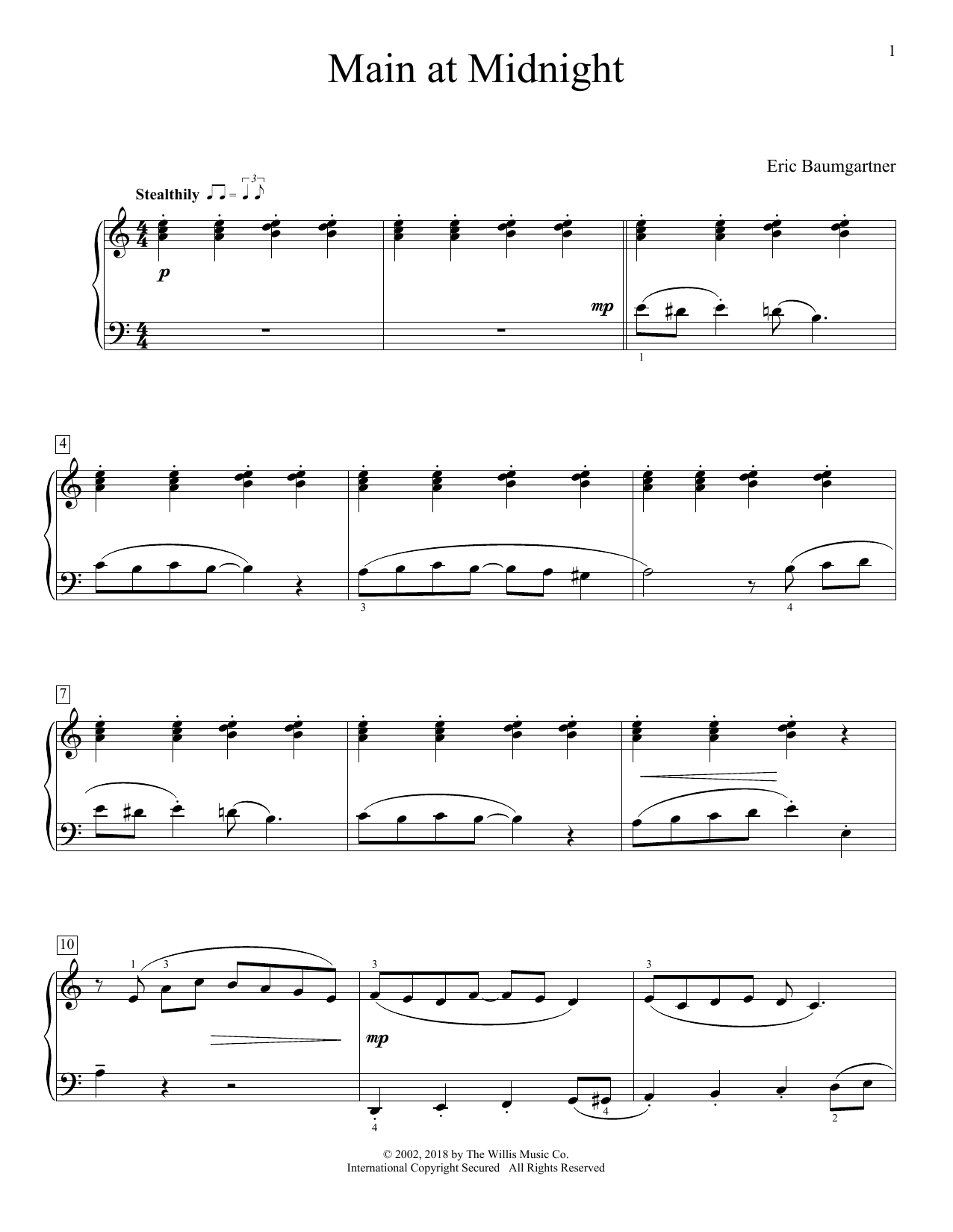 Download or print Eric Baumgartner Main At Midnight sheet music, chords and digital score arranged for Educational Piano. This Jazz score includes 2 page(s).