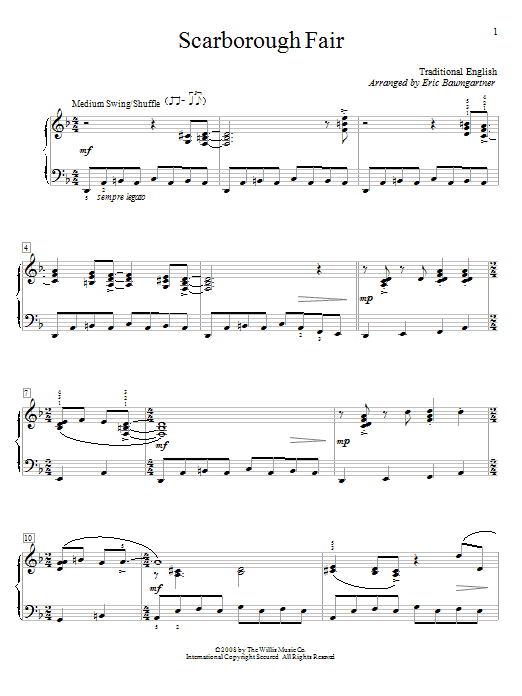 Download or print Eric Baumgartner Scarborough Fair sheet music, chords and digital score arranged for Educational Piano. This Children score includes 4 page(s).