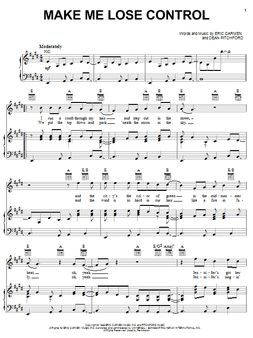 Download or print Eric Carmen Make Me Lose Control sheet music, chords and digital score arranged for Lead Sheet / Fake Book. This Pop score includes 2 page(s).