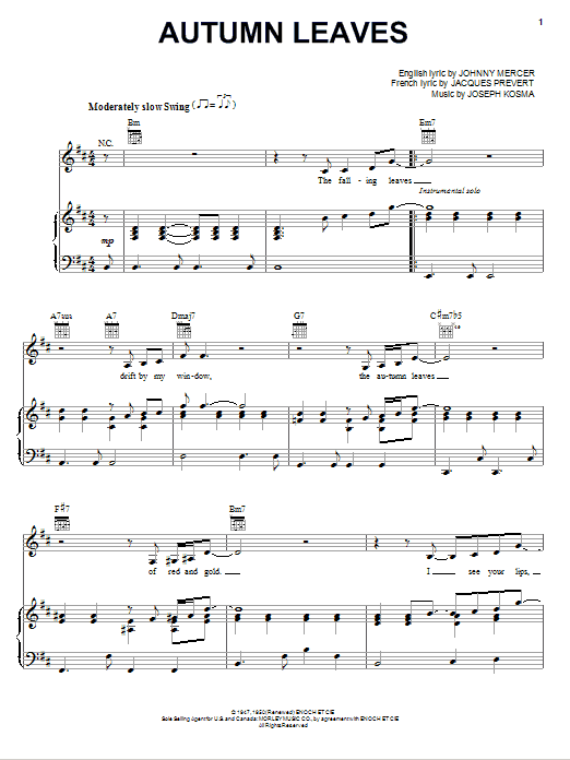 Quick facts Autumn Leaves about digital sheet music