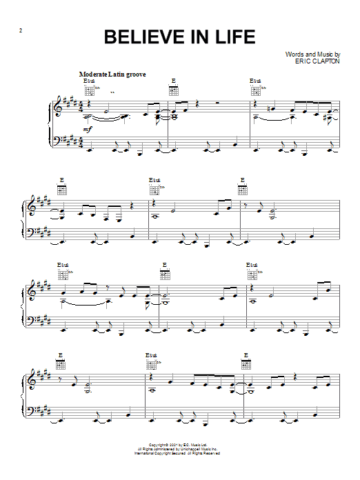 Download or print Eric Clapton Believe In Life sheet music, chords and digital score arranged for Guitar Chords/Lyrics. This Rock score includes 3 page(s).