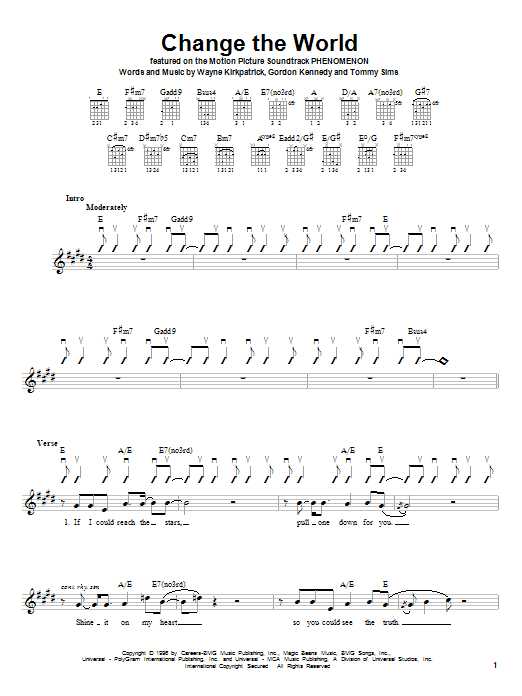 Download or print Eric Clapton Change The World sheet music, chords and digital score arranged for Piano, Vocal & Guitar Chords. This Pop score includes 6 page(s).
