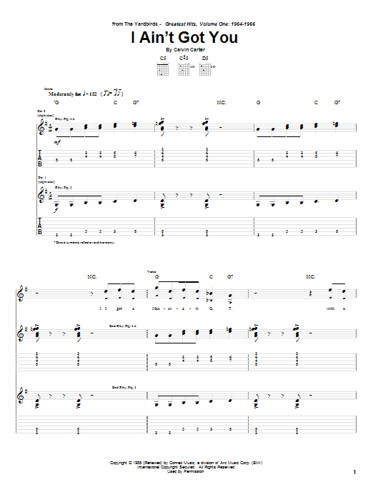 Download or print Eric Clapton I Ain't Got You sheet music, chords and digital score arranged for Piano, Vocal & Guitar Chords (Right-Hand Melody). This Blues score includes 3 page(s).