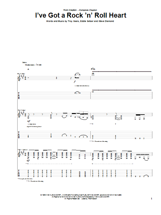 Download or print Eric Clapton I've Got A Rock 'N' Roll Heart sheet music, chords and digital score arranged for Guitar Tab. This Blues score includes 10 page(s).