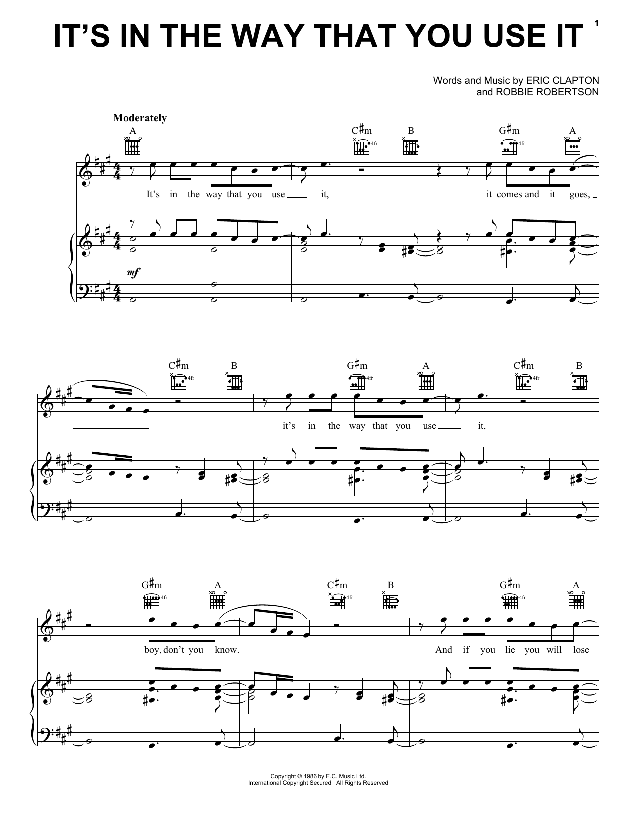 Download or print Eric Clapton It's In The Way That You Use It sheet music, chords and digital score arranged for Guitar Chords/Lyrics. This Rock score includes 2 page(s).