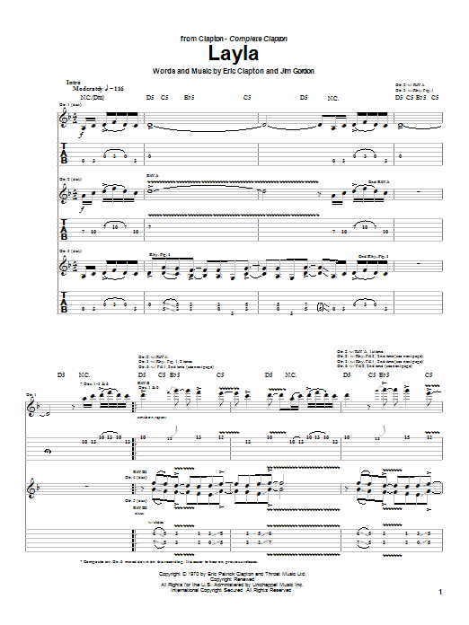 Download or print Eric Clapton Layla sheet music, chords and digital score arranged for Bass Guitar Tab. This Love score includes 7 page(s).
