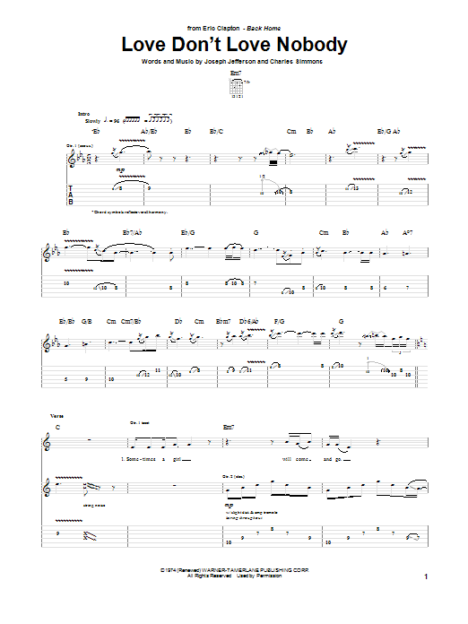 Download or print Eric Clapton Love Don't Love Nobody sheet music, chords and digital score arranged for Guitar Tab. This Pop score includes 16 page(s).