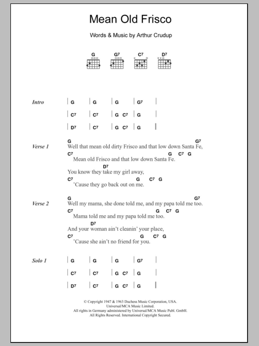 Quick facts Mean Old Frisco about digital sheet music