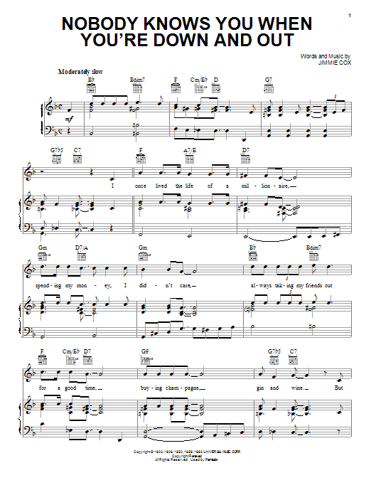 Quick facts Nobody Knows You When You're Down And Out about digital sheet music