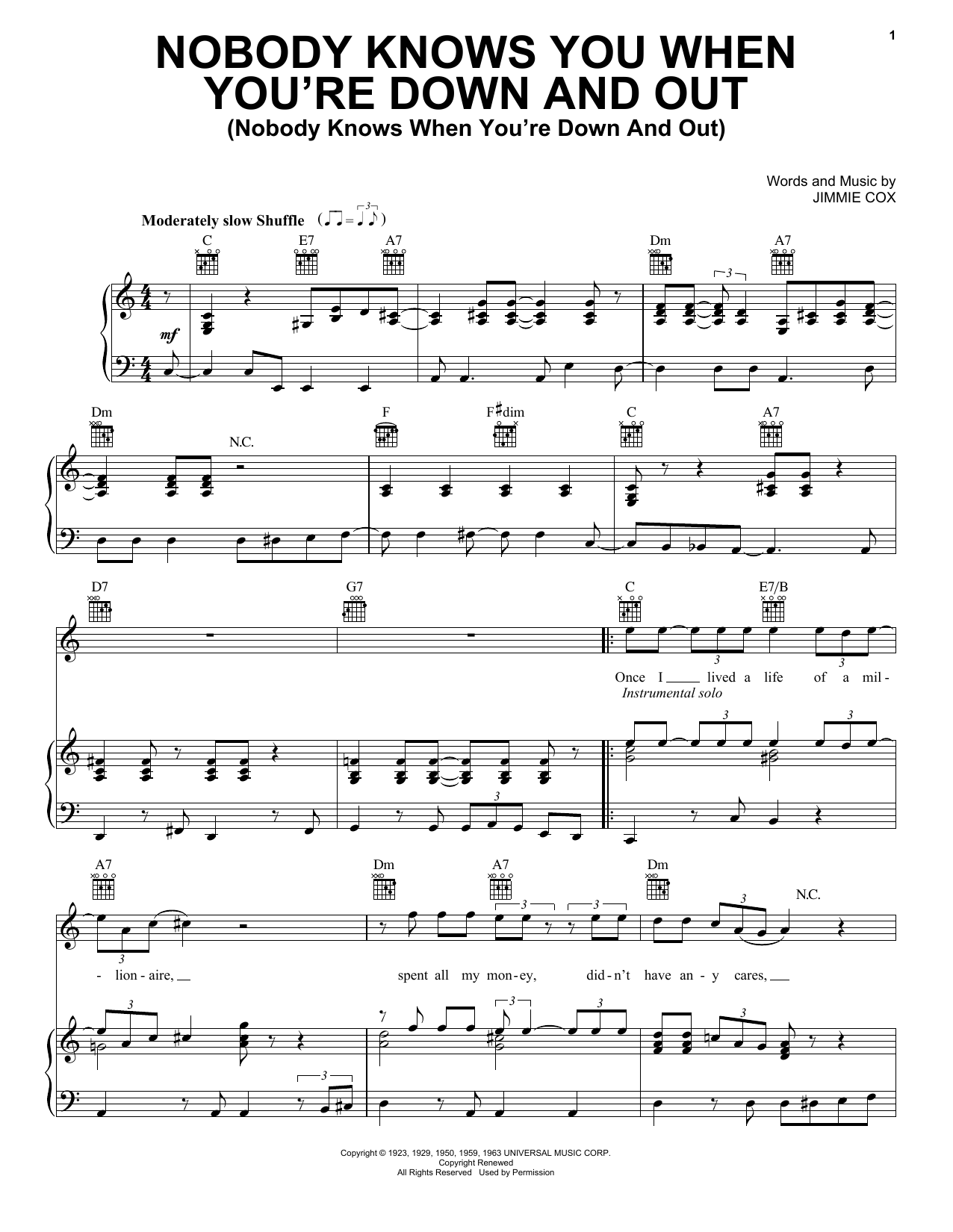 Quick facts Nobody Knows You When You're Down And Out (Nobody Knows When You're Down And Out) about digital sheet music