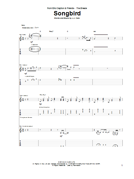 Download or print Eric Clapton Songbird sheet music, chords and digital score arranged for Guitar Tab. This Blues score includes 9 page(s).