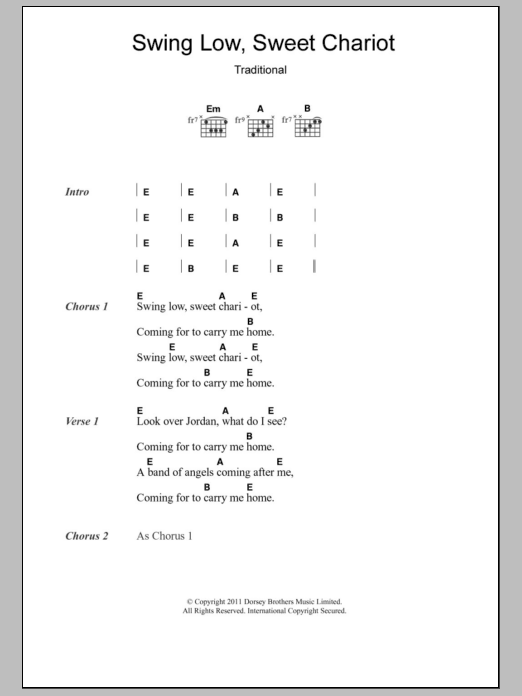 Quick facts Swing Low, Sweet Chariot about digital sheet music