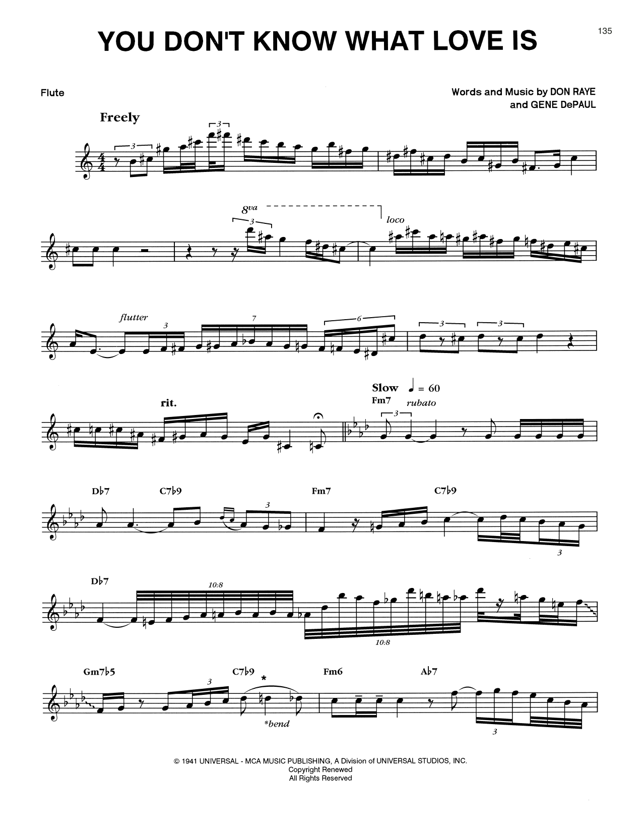 Download or print Eric Dolphy You Don't Know What Love Is sheet music, chords and digital score arranged for Flute Transcription. This Jazz score includes 15 page(s).