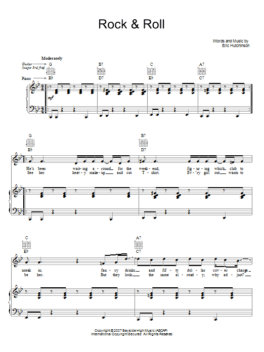 Download or print Eric Hutchinson Rock & Roll sheet music, chords and digital score arranged for Ukulele Chords/Lyrics. This Pop score includes 4 page(s).