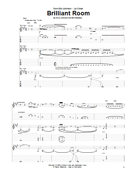 Download or print Eric Johnson Brilliant Room sheet music, chords and digital score arranged for Guitar Tab. This Jazz score includes 19 page(s).