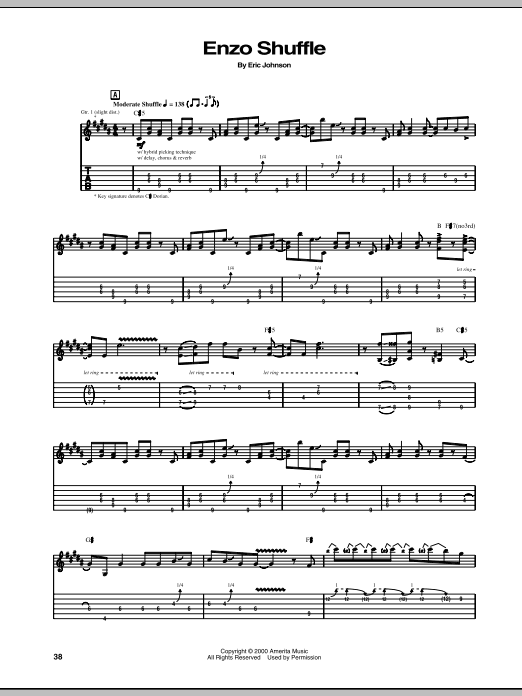 Download or print Eric Johnson Enzo Shuffle sheet music, chords and digital score arranged for Guitar Tab. This Pop score includes 4 page(s).
