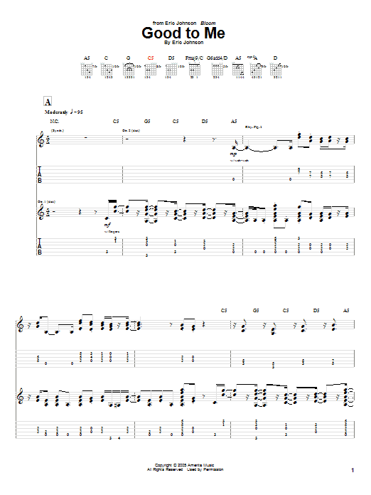 Download or print Eric Johnson Good To Me sheet music, chords and digital score arranged for Guitar Tab. This Pop score includes 15 page(s).