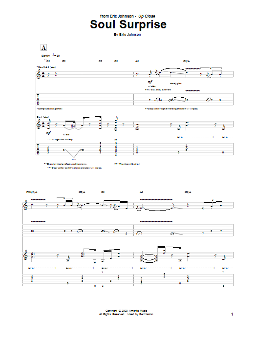 Download or print Eric Johnson Soul Surprise sheet music, chords and digital score arranged for Guitar Tab. This Jazz score includes 39 page(s).
