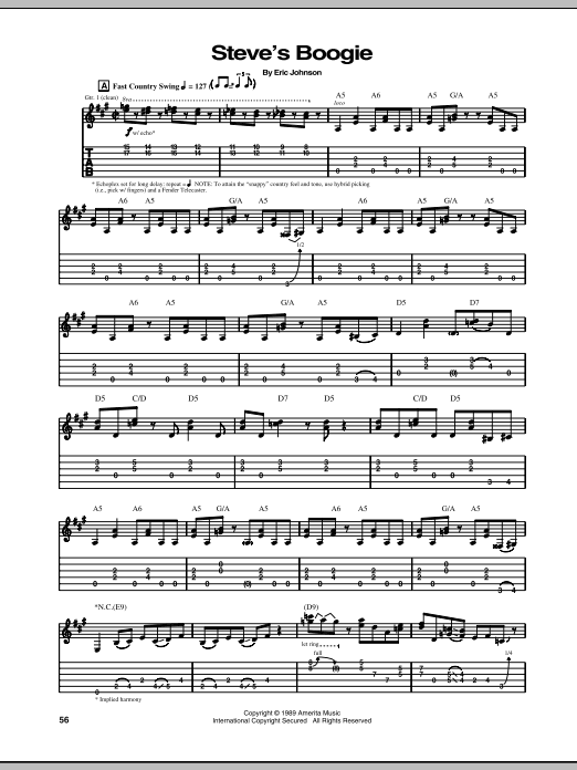 Download or print Eric Johnson Steve's Boogie sheet music, chords and digital score arranged for Guitar Tab. This Pop score includes 7 page(s).