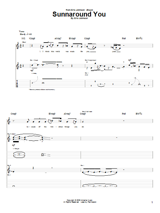 Download or print Eric Johnson Sunnaround You sheet music, chords and digital score arranged for Guitar Tab. This Pop score includes 9 page(s).