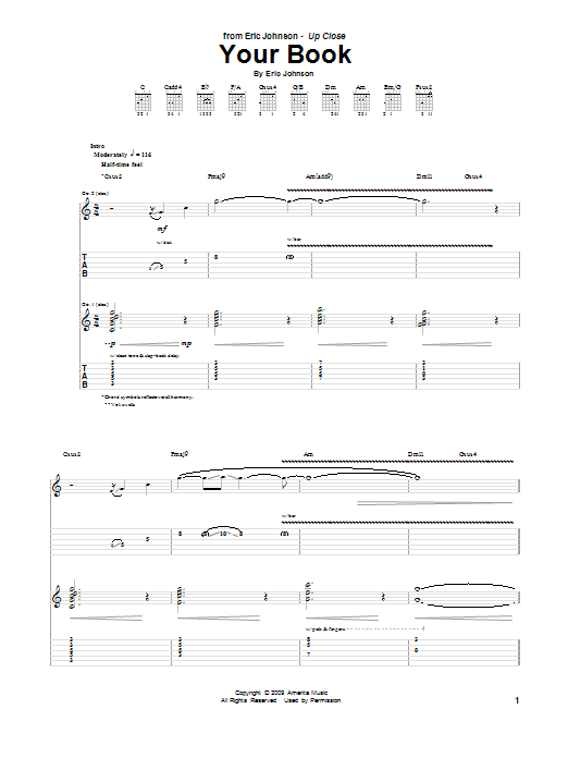 Download or print Eric Johnson Your Book sheet music, chords and digital score arranged for Guitar Tab. This Jazz score includes 11 page(s).