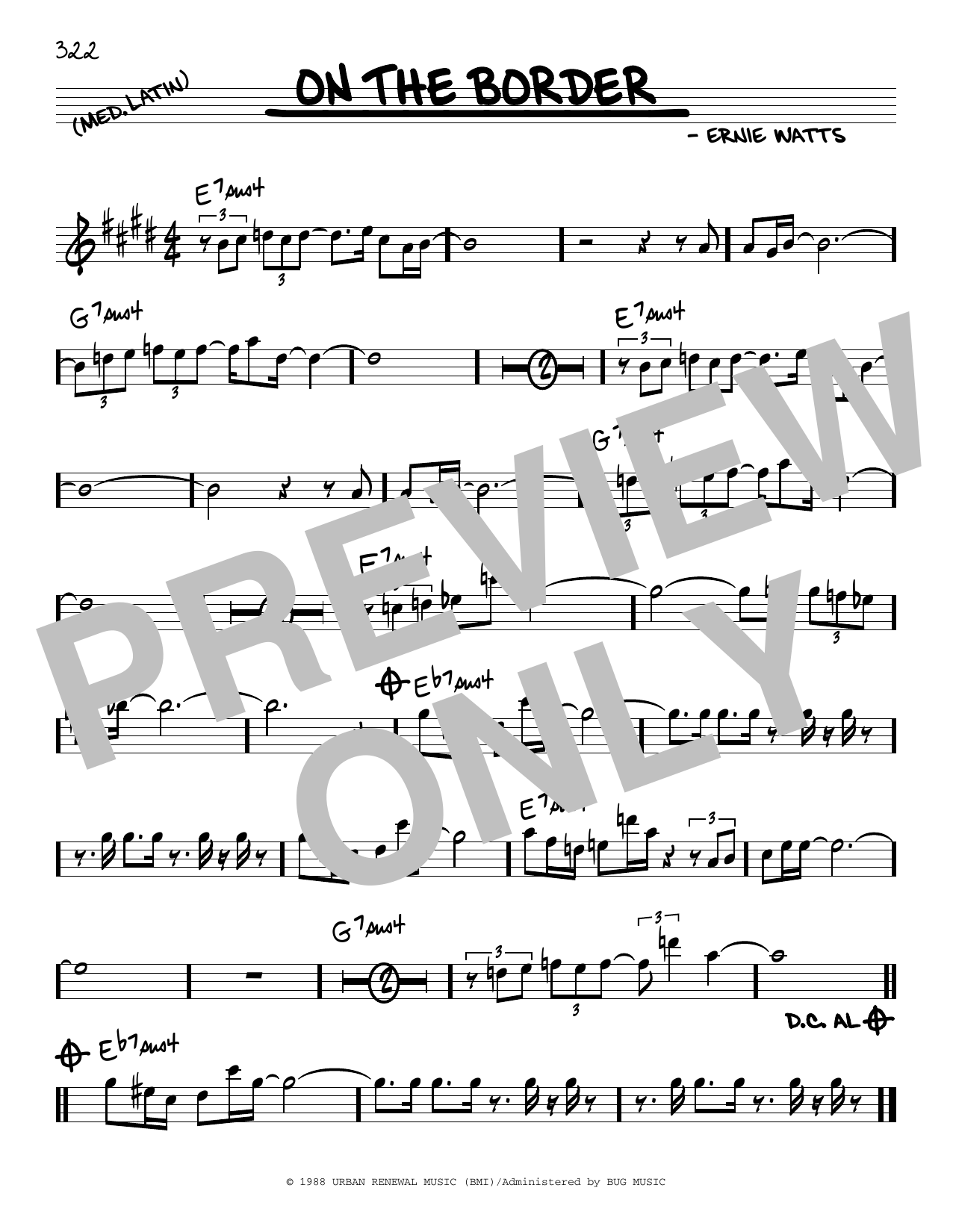 Download or print Ernie Watts On The Border sheet music, chords and digital score arranged for Real Book – Melody & Chords. This Jazz score includes 1 page(s).