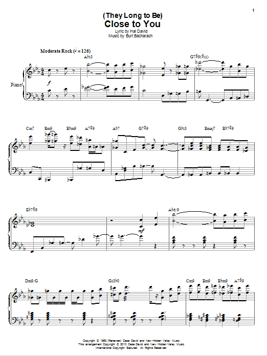 Quick facts (They Long To Be) Close To You about digital sheet music