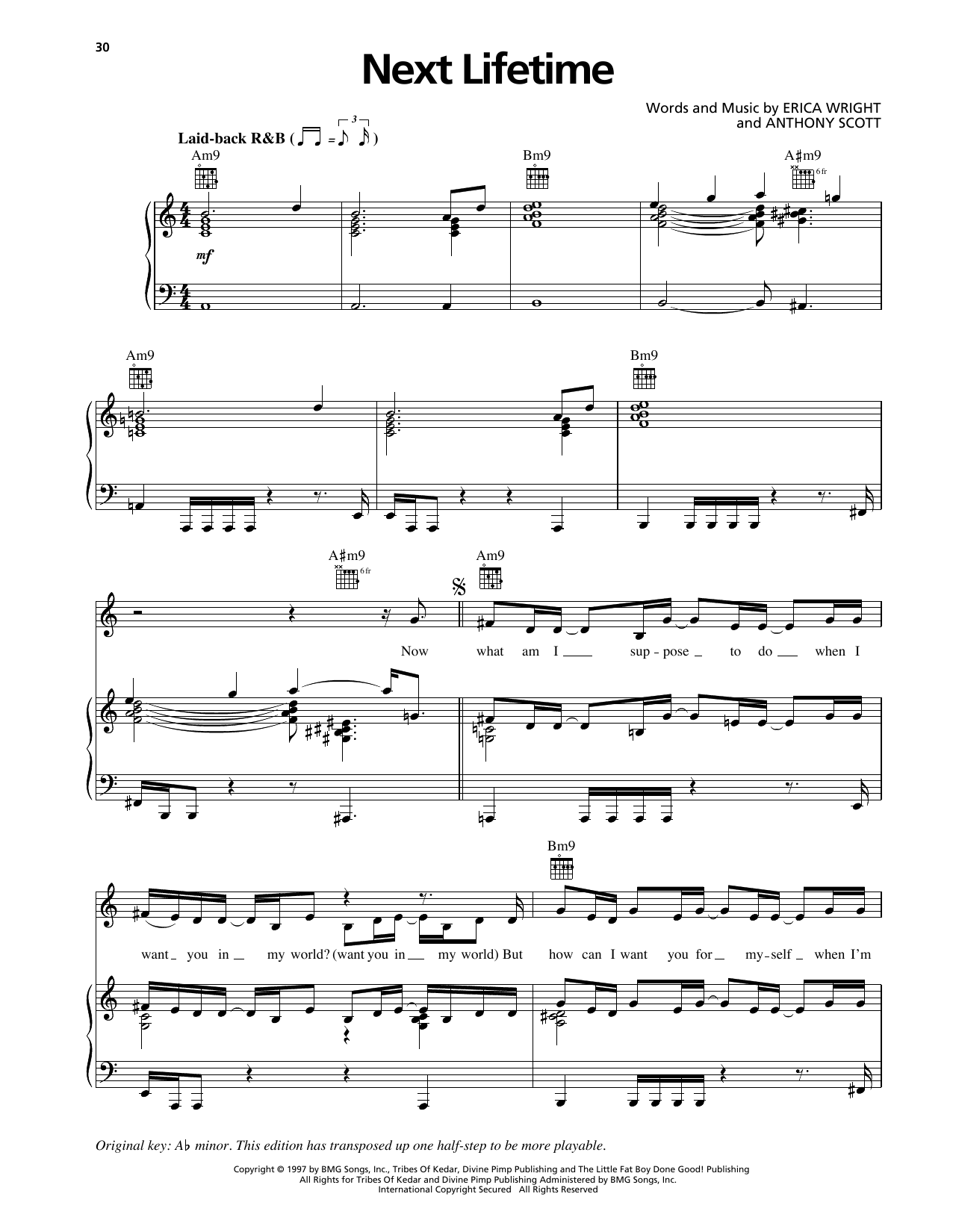 Download or print Erykah Badu Next Lifetime sheet music, chords and digital score arranged for Piano, Vocal & Guitar Chords (Right-Hand Melody). This Pop score includes 7 page(s).