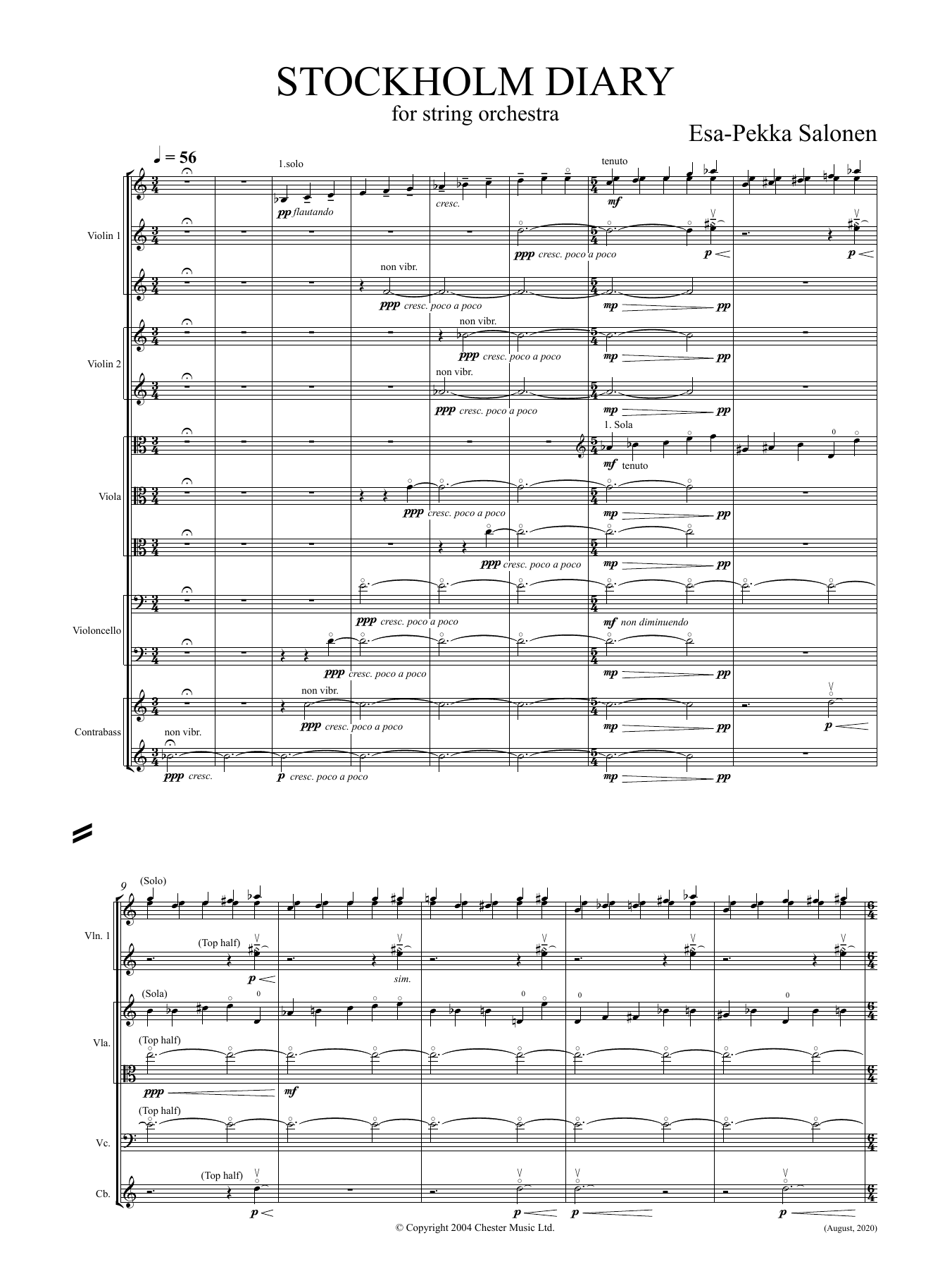 Download or print Esa-Pekka Salonen Stockholm Diary (Study Score) sheet music, chords and digital score arranged for String Ensemble. This Classical score includes 51 page(s).