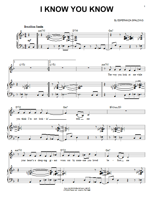 Download or print Esperanza Spalding I Know You Know sheet music, chords and digital score arranged for Piano & Vocal. This Pop score includes 10 page(s).