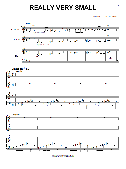 Download or print Esperanza Spalding Really Very Small sheet music, chords and digital score arranged for Piano & Vocal. This Pop score includes 9 page(s).