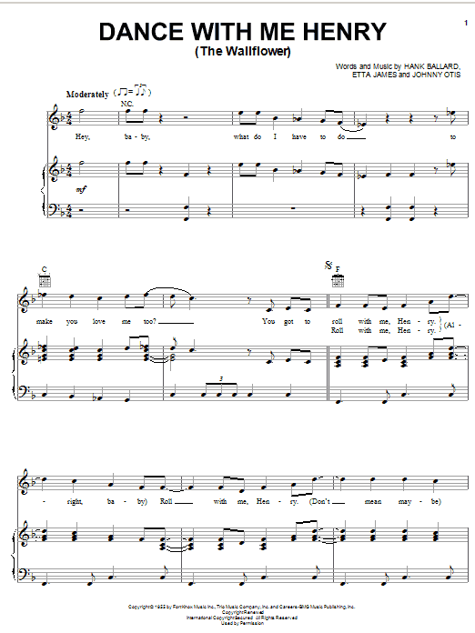 Download or print Etta James Dance With Me Henry (The Wallflower) sheet music, chords and digital score arranged for Lead Sheet / Fake Book. This Standards score includes 1 page(s).