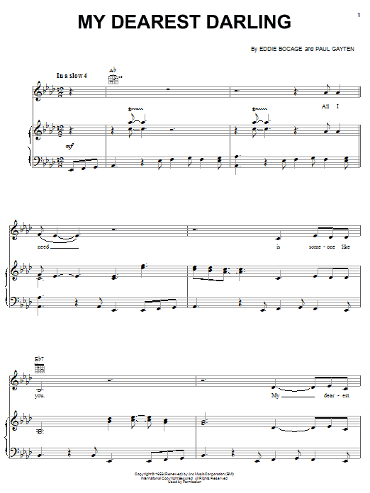Download or print Etta James My Dearest Darling sheet music, chords and digital score arranged for Piano, Vocal & Guitar Chords (Right-Hand Melody). This Blues score includes 5 page(s).
