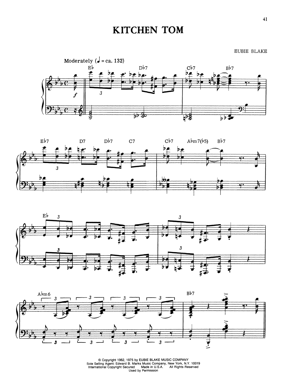 Download or print Eubie Blake Kitchen Tom sheet music, chords and digital score arranged for Piano Solo. This Jazz score includes 7 page(s).